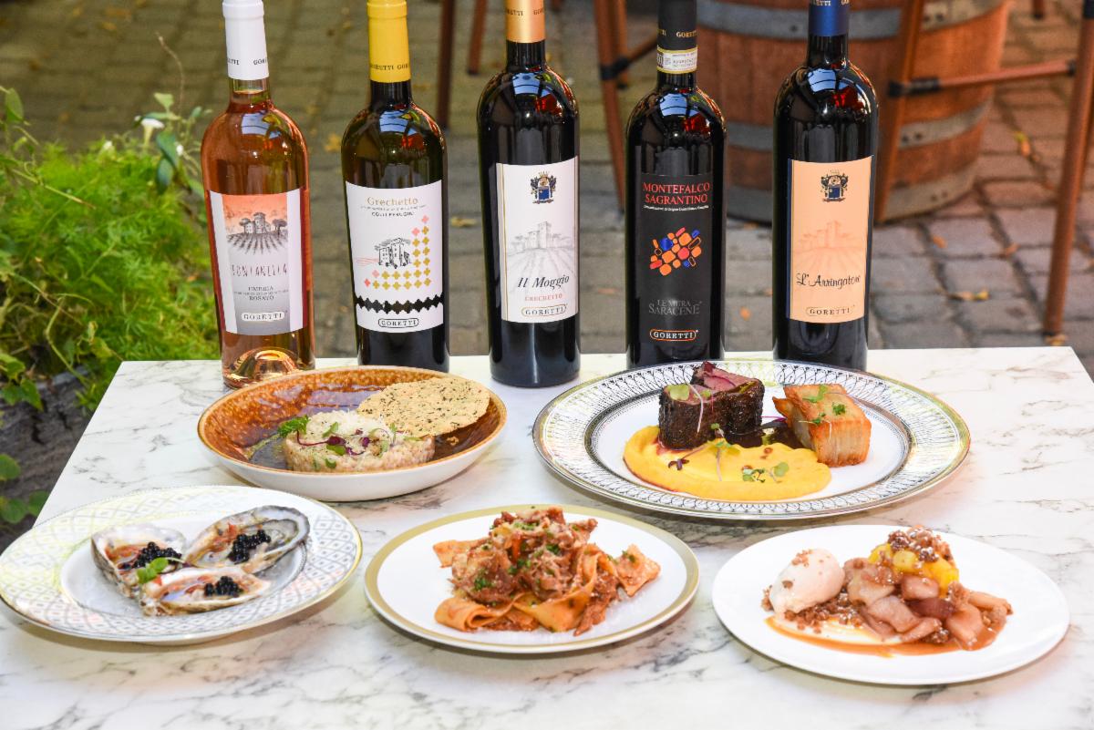 Fifth Course Bertolani, "Lambrusco Oro", Regiano Lambrusco Campfire S’more Pavlova Baked Italian meringue filled with dark chocolate mousse, hazelnut gelato, graham cracker crumble, marshmallow fluff |